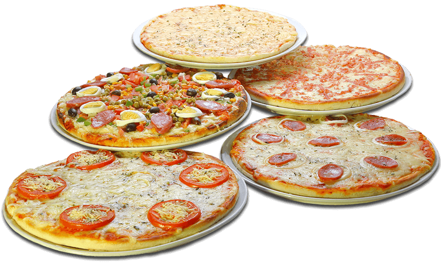 | A Sua Pizza - Escolha 6 ingredientes e monte a sua pizza: Lingüiça Calabresa, Presunto, Ervilha, Pimentão, Cebola, Tomate, Ovo, Bacon, Azeitona, Orégano, Requeijão e Frango |
